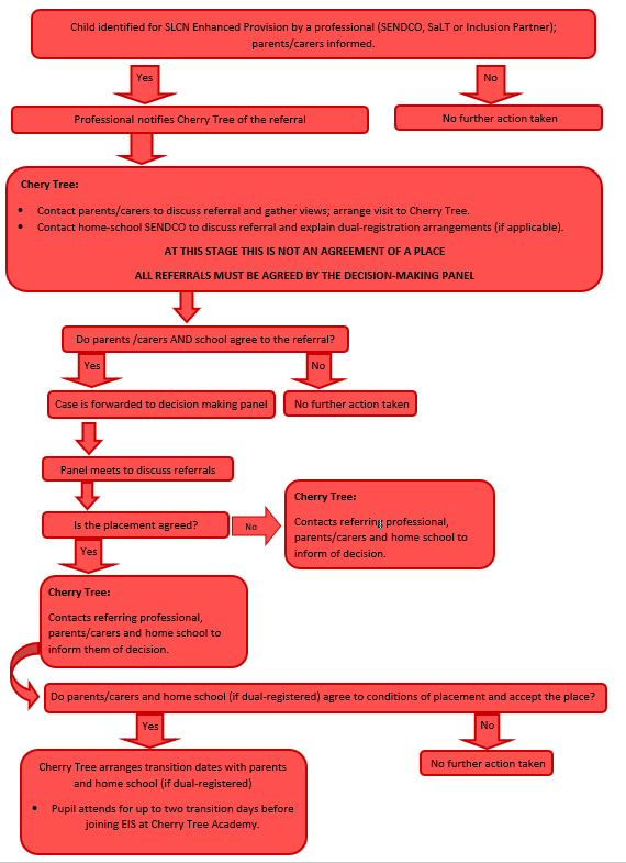 Families may name Cherry Tree Academy’s Enhanced Provision during an EHCP assessment or annual review. When this happens, the Local Authority sends a consultation to the school. The school reviews the EHCP and accompanying information to determine whether the provision would be appropriate for the child’s identified needs. In more complex cases, the school may seek advice from the Local Authority’s SLCN Panel before responding.