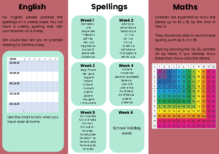 Each week, the children are expected to complete an activity from each book and hand them in on Friday to be marked. The activities to be completed, will be set each week. There is also a termly project that can be completed and is attached below.