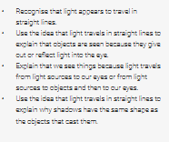 In Science this term, we will build on our learning of light. We will be working on the following Learning Intentions: